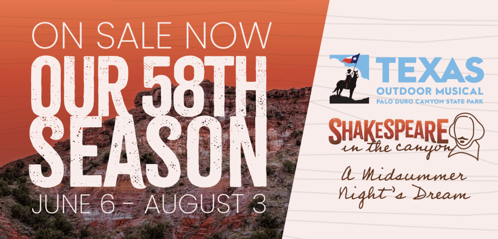 While a midsummer night may bring dreams, this year it will also bring laughs. The historic Texas Outdoor Musical, performed now for 58 seasons in Palo Duro Canyon, introduces Shakespeare in the Canyon with a production of A Midsummer Night’s Dream premiering on July 9 at 8pm at the Pioneer Amphitheater and running Tuesdays in July. Just before that at 7:20pm on the Margaret Harper Terrace, arriving patrons will be able to see the premiere of the new work Welcome Wanderers, a mini-musical commissioned for Shakespeare in the Canyon with Music, Lyrics, and Book by Bradley J. Behrmann.